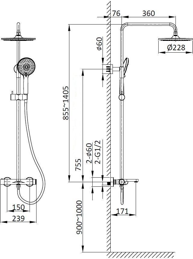 Описание душевая система с изливом Vincea VSFS-1R1CH
