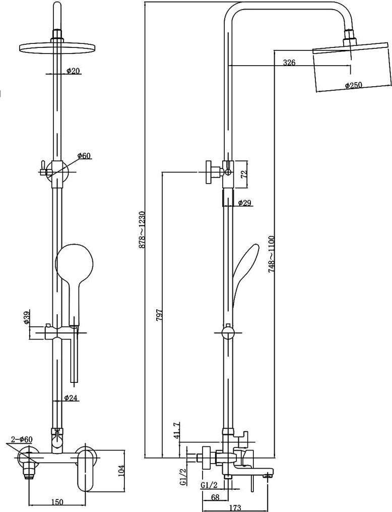 Характеристики душевая система с изливом Azario (AZ-20R)