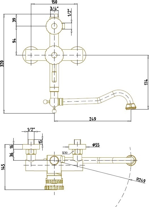 Душевая система для ванны Bronze de Luxe Windsor 10120DF/1, лейка "цветок", поворотный излив длинный 25 см, материал латунь, цвет бронза.