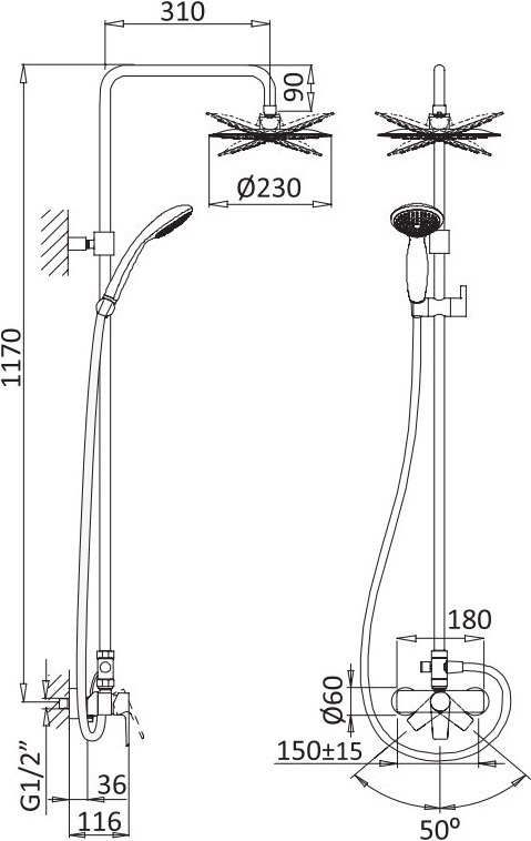 Характеристики душевая система без излива Cezares (NAUTIC-CD-01)