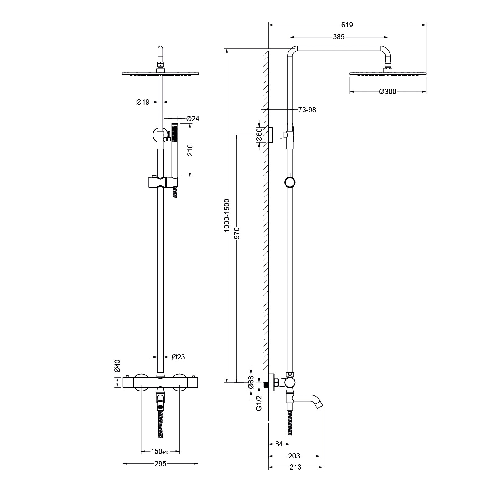 • Душевая система настенная с круглой лейкой (латунь) в стиле модерн