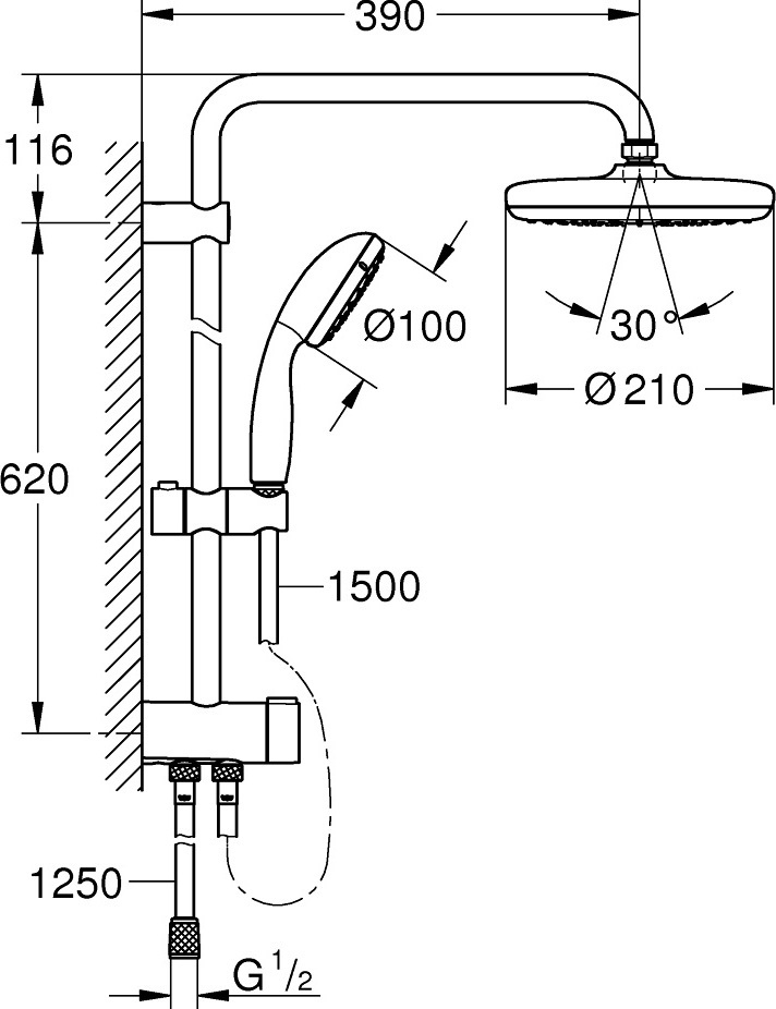 • универсальный монтаж: подключение к смесителю / к подключению для душевого шланга с резьбой 1/2"