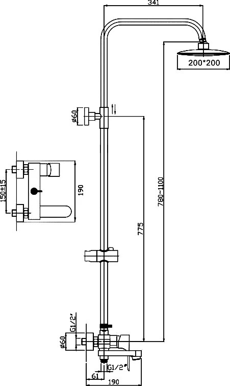 Характеристики душевая система с изливом Haiba (HB24816-3)