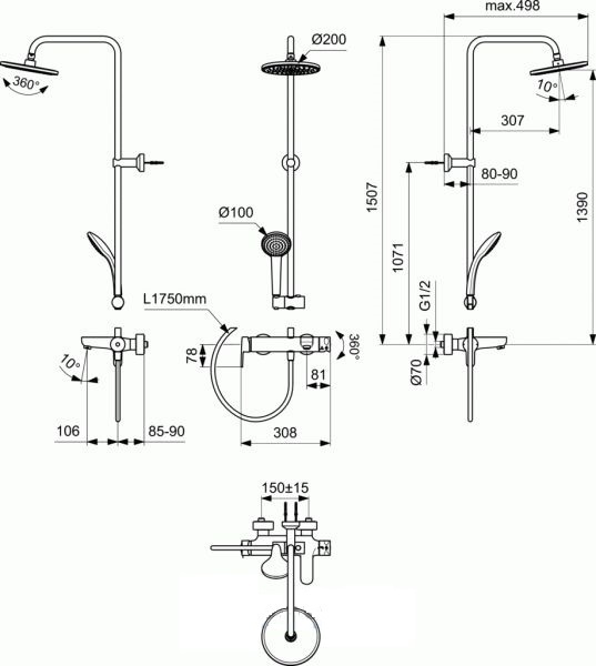 Характеристики душевая система с изливом Ideal Standard (BC749XG)