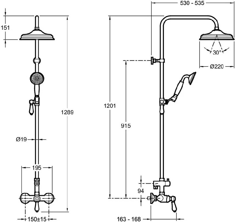 Душевая стойка Jacob Delafon Louise E24368-CP, материал - латунь, цвет - хром.
