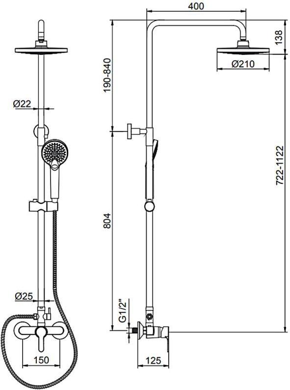 Характеристики душевая система без смесителя Ledeme (L2403)