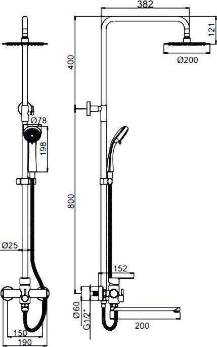 Душевая стойка Ledeme L72403-1, нержавеющая сталь