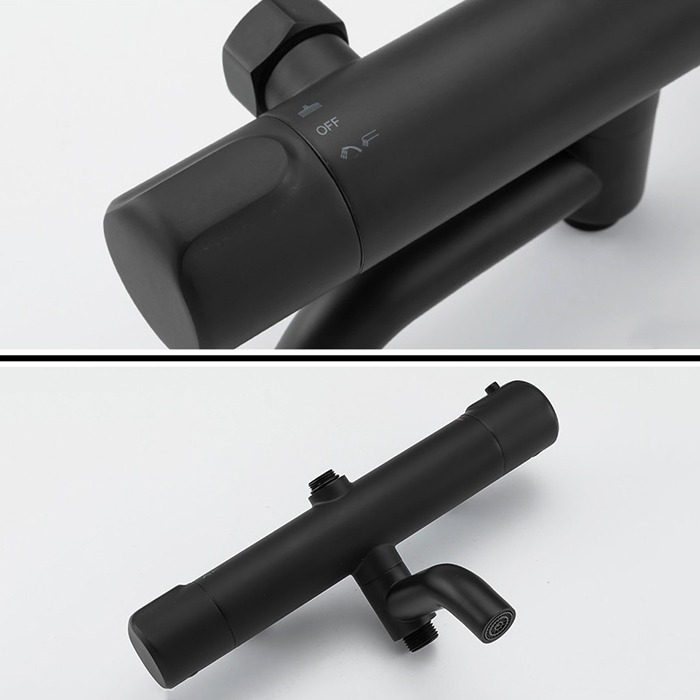 Душевая стойка с термостатом и выдвижным изливом Gappo G2490-6, материал - латунь, цвет - черный.