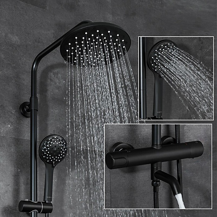 Душевая стойка с термостатом Gappo G2490-6, черный, Цвет производителя: чёрный - фото