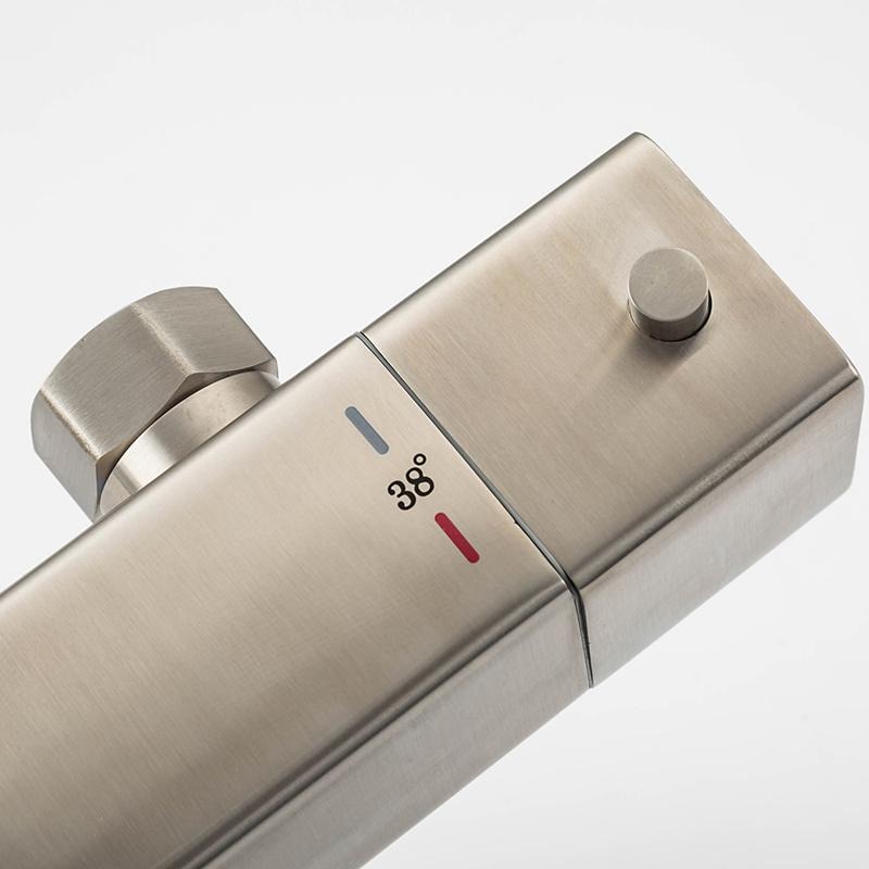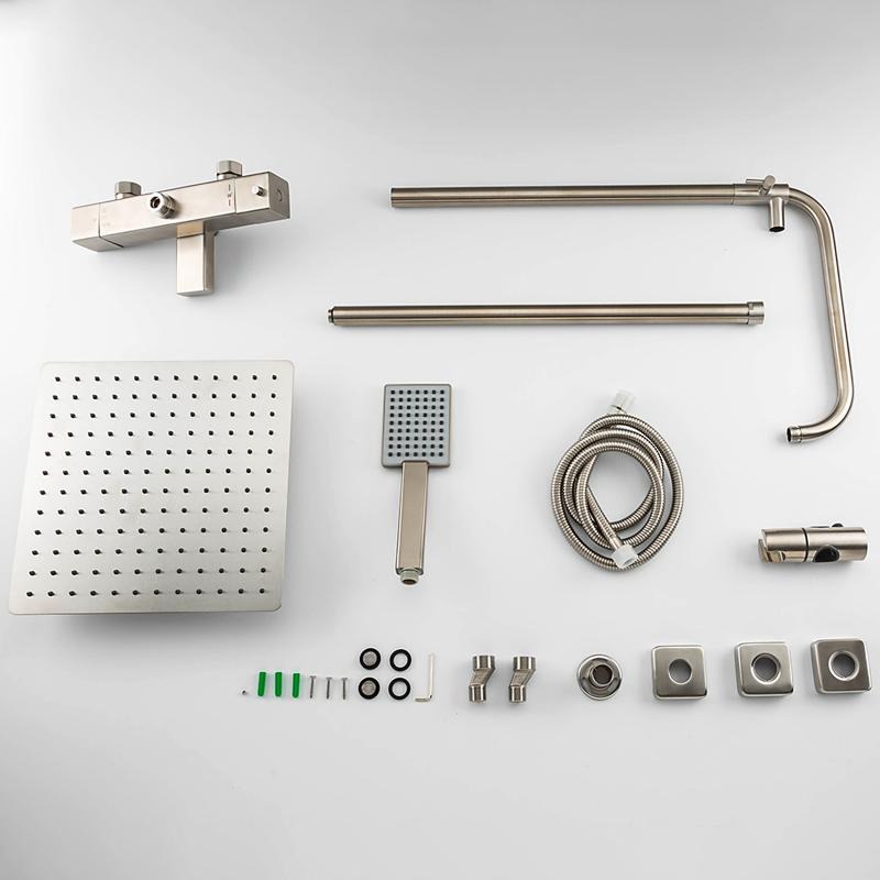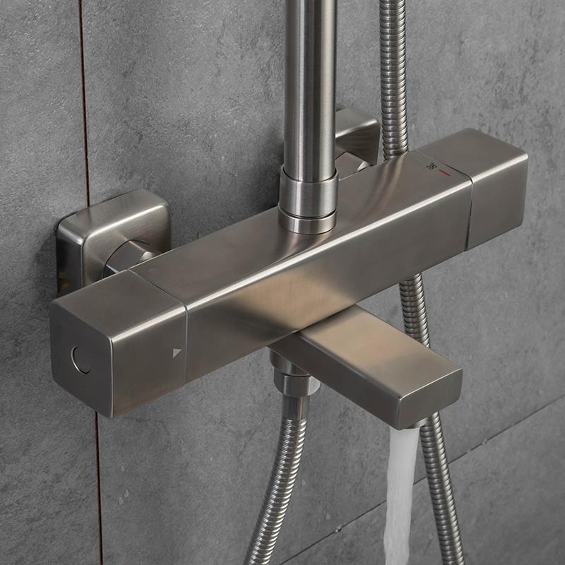 Душевая система Gappo G2499-40 из нержавеющей стали оснащена термостатом. Можно выставить комфортную температуру, напор воды и забыть о настройках надолго. Термостат абсолютно безопасен, при резком перепаде температур, он перекрывает воду. Чтобы не облить холодной или не ошпарить кипятком. Корпус сделан из нержавеющей стали. Поэтому без проблем она вам прослужит не один десяток лет. Лейка, верхний душ и эксцентрики идут в комплекте.