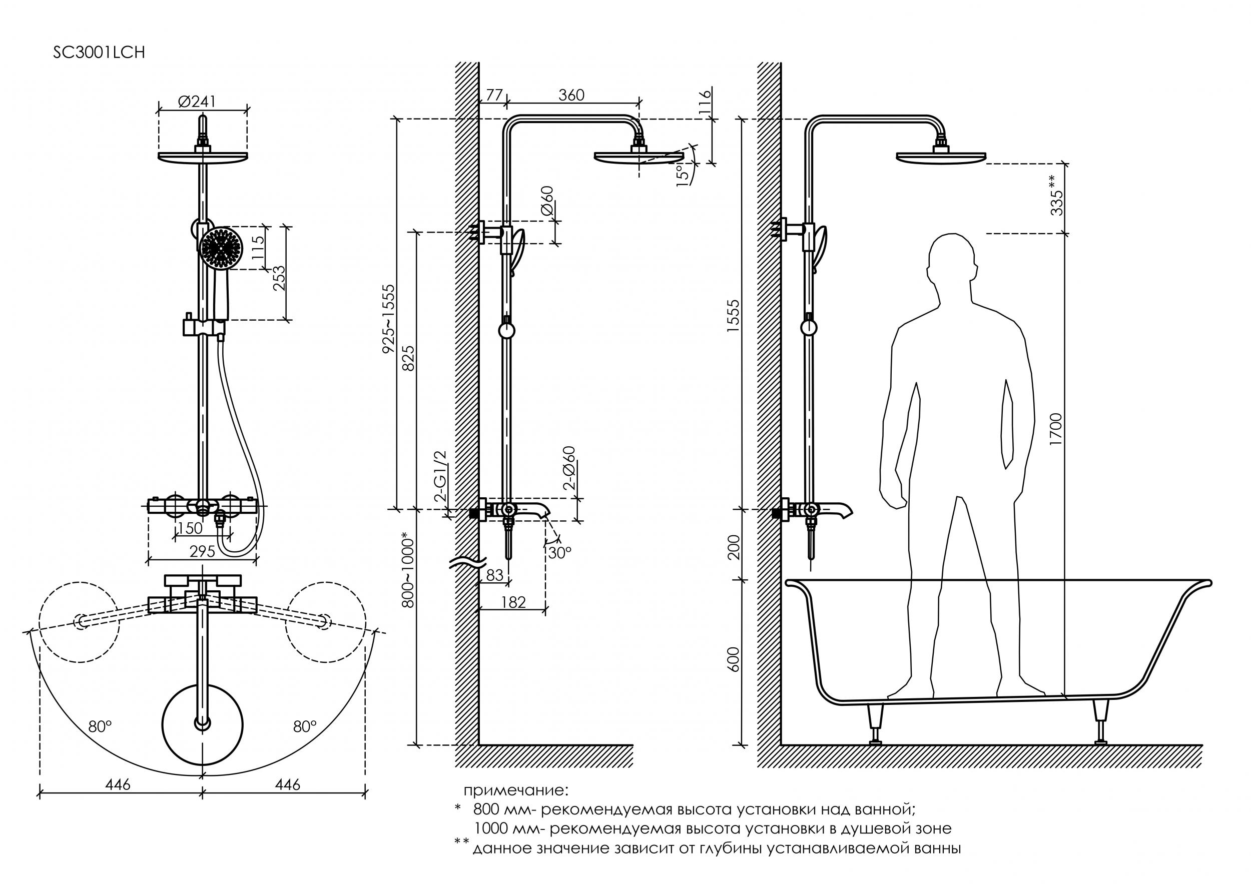 Характеристики душевая система с изливом Sancos (SC3001LCH)