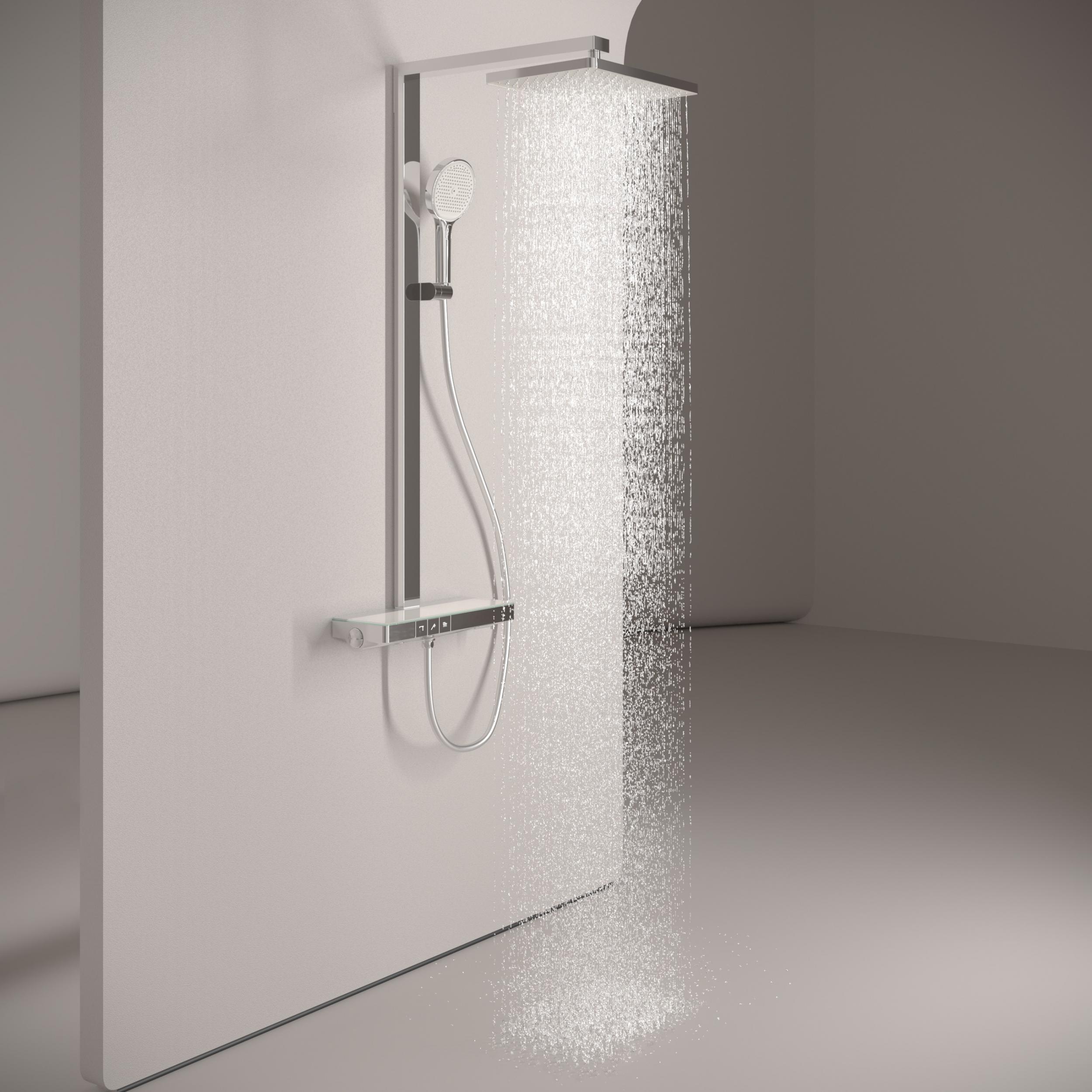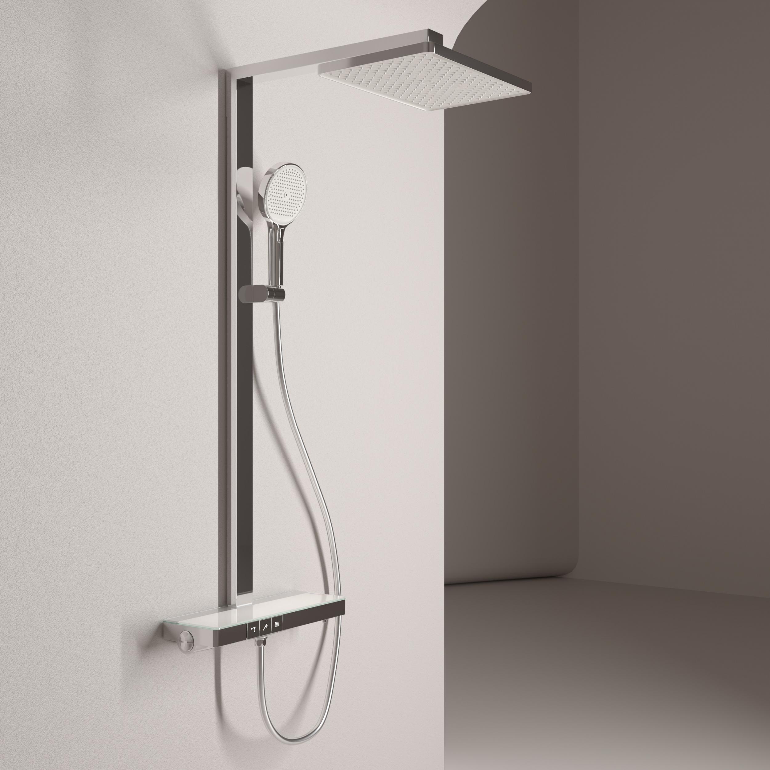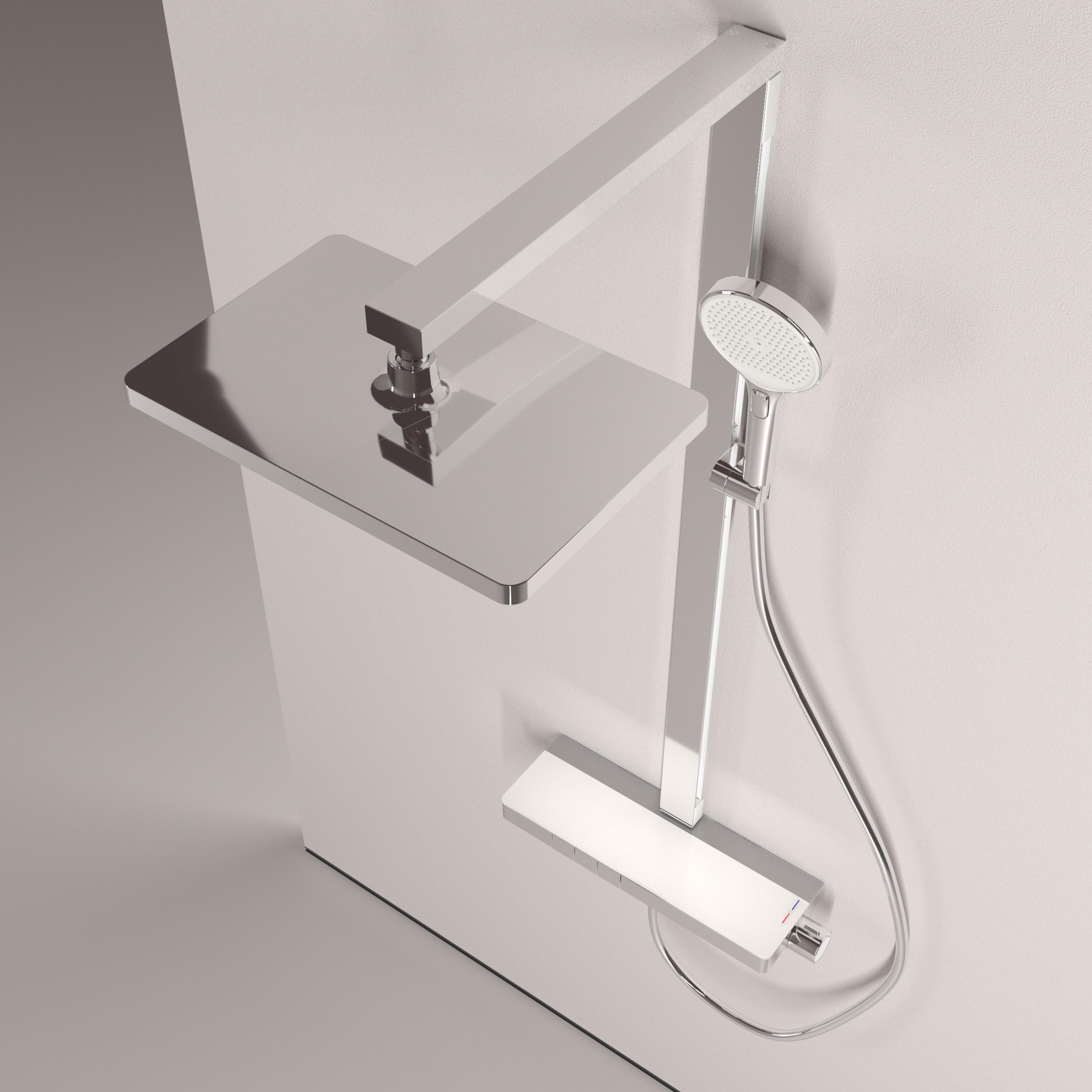 - Душевая система с термостатическим смесителем и встроенным изливом в корпус смесителя