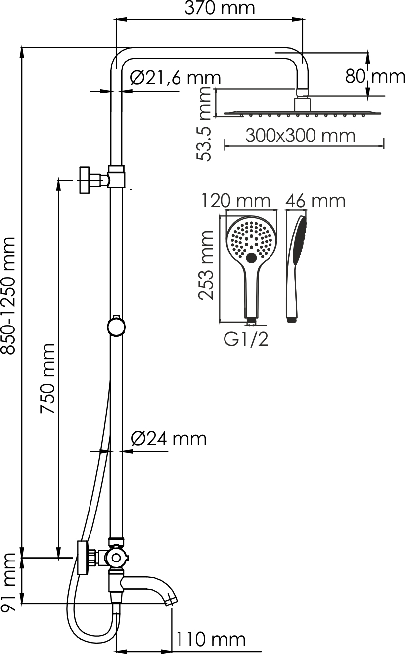 • Стойка для душа, Ø 22 мм регулируемая по высоте