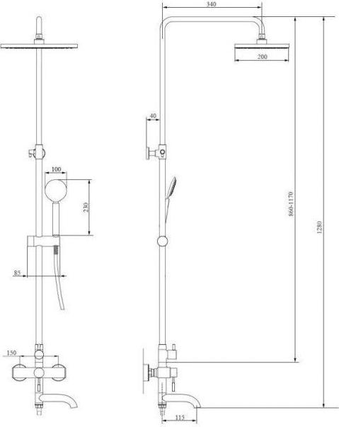 Характеристики душевая система с изливом Zerix (SUS-009-J)