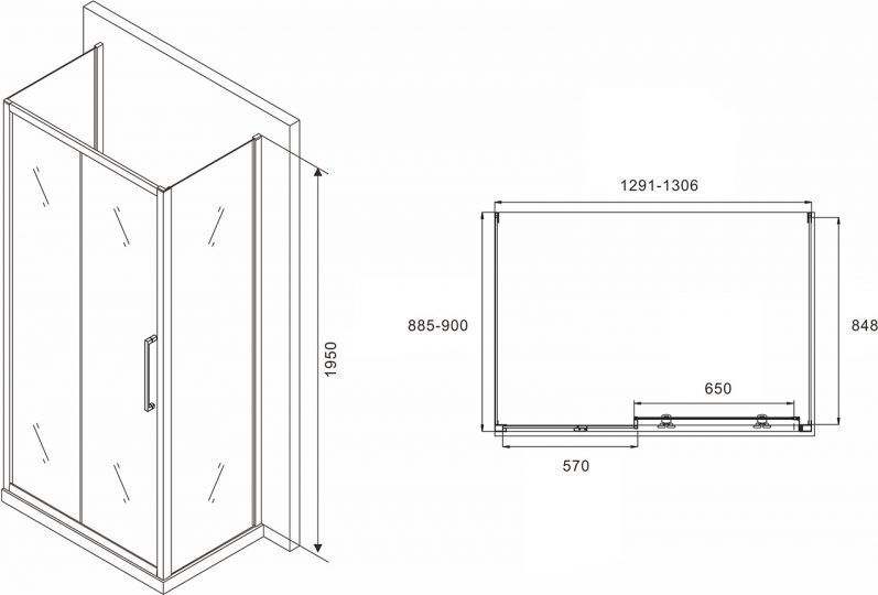 Душевое ограждение Abber Schwarzer Diamant AG30130H-S90-S90 1300х900х1950 мм, профиль - хром, стекло - прозрачное 6 мм. Поддон приобретается отдельно. Дверь 130 см, душевая стенка 90 см.