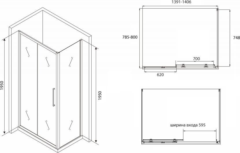 - Ширина входа: 595 мм