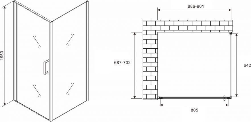 Душевое ограждение Abber Sonnenstrand AG04090B-S70B 900х700х1950 мм, профиль - черный, стекло - прозрачное 6 мм. Поддон приобретается отдельно. Дверь 90 см, душевая стенка 70 см.