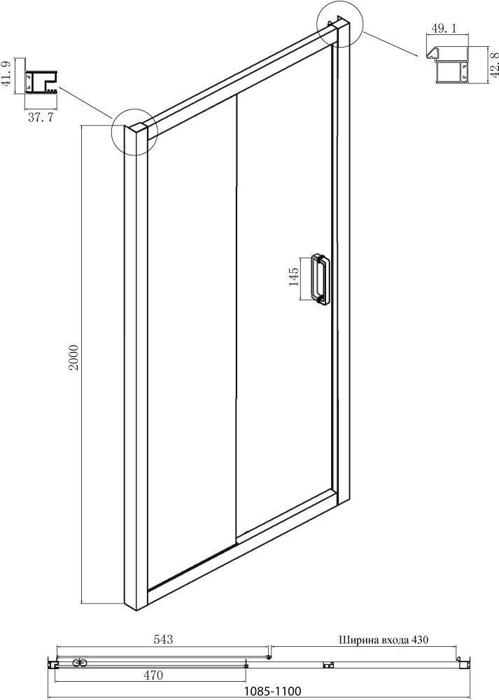 - Дверь: одна раздвижная дверь, одно неподвижное стекло