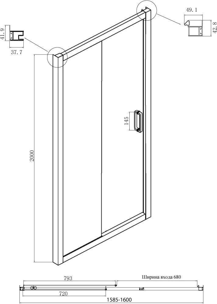 Душевое ограждение Ambassador Forsa, размер 1600х1000х2000 мм, профиль чёрный, стекло прозрачное 6 мм. Габариты регулировки (1585-1600)х(985-1000)х2000 мм, ширина входа 680 мм. Поддон приобретается отдельно. Дверь 160 см, душевая стенка 100 см.