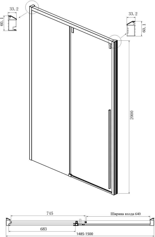 • Дверь: одна раздвижная дверь, одно неподвижное стекло