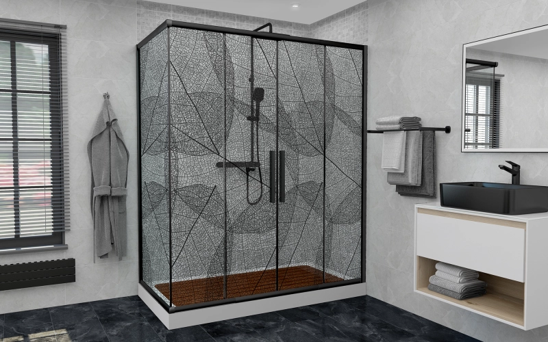 Душевое ограждение Avacan (170-190)х90 см FB2-170-SB90, чёрный/узор