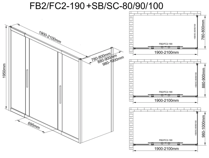 Описание Душевое ограждение Avacan FB2-190-SB80MT