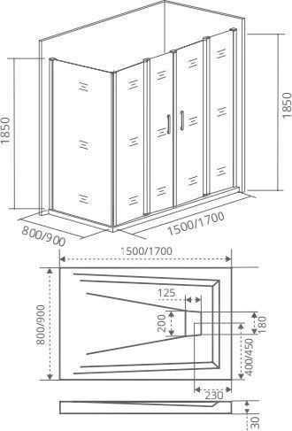 Душевое ограждение Bas Infinity WTW-TD+SP C-CH, размер 1700х800х1850 мм, профиль хром, стекло прозрачное. Вход 680 мм. Поддон приобретается отдельно. Дверь 170 см, душевая стенка 80 см.
