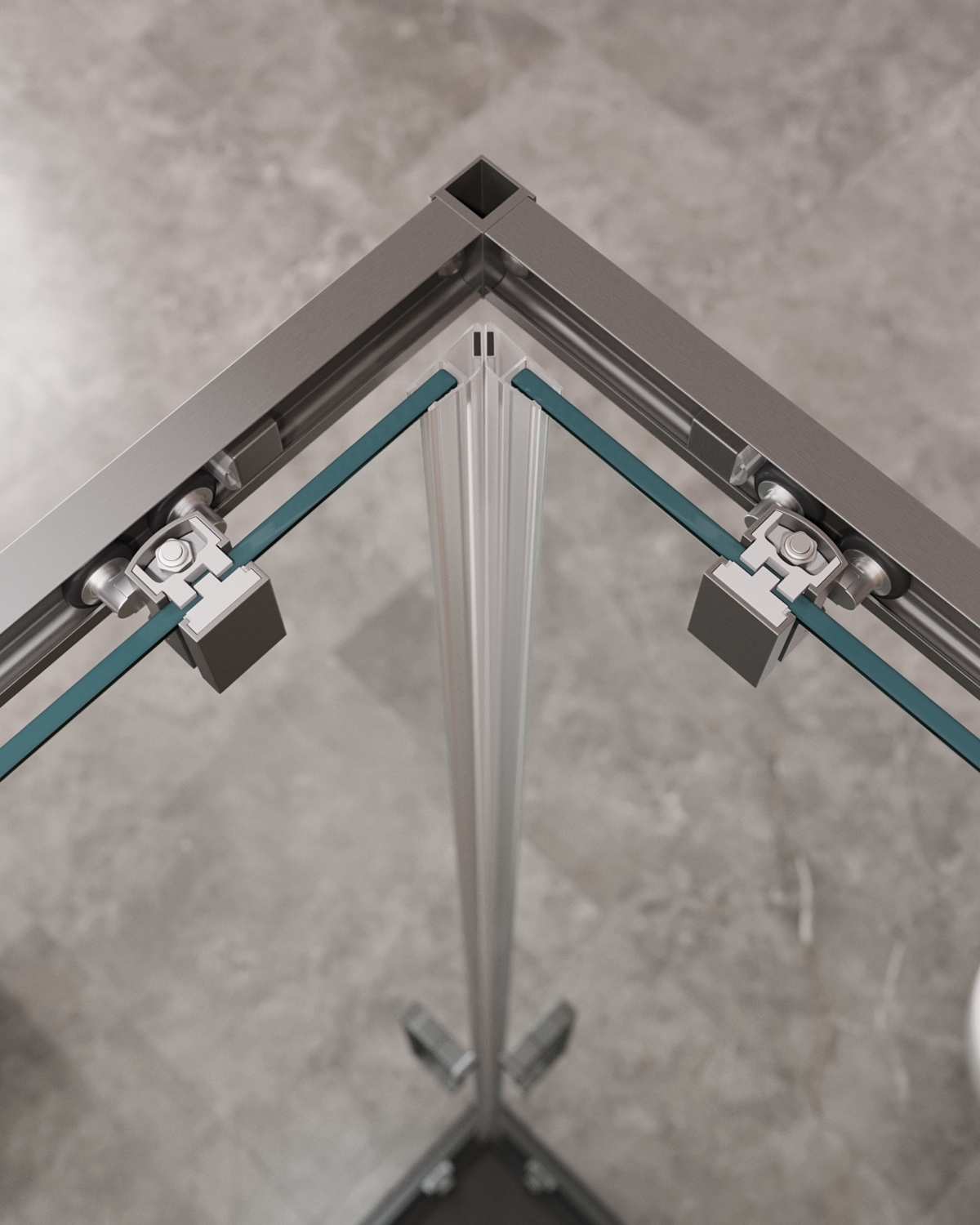Душевое ограждение Cezares MOLVENO-A-22-90+30-C-GM-IV, размер 1200x1200x1950 мм, профиль оружейная сталь, стекло прозрачное, поддон приобретается отдельно. Габариты с регулировками (1180-1205)x(1180-1205)x1950 мм, вход 490 мм.