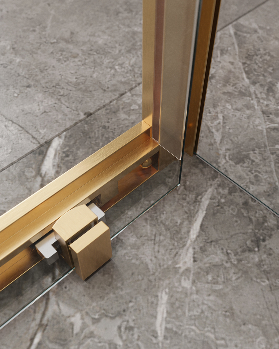 Душевое ограждение Cezares MOLVENO-AH-11-160/90-C-BORO-IV, размер 1600x900x1950 мм, профиль брашированное золото, стекло прозрачное, поддон приобретается отдельно. Габариты с регулировками (1580-1620)x(880-900)x1950 мм, вход 575 мм. Дверь 160 см, душевая стенка 90 см.