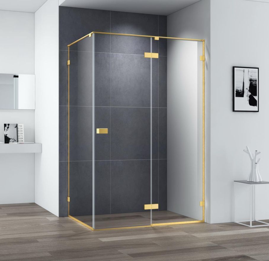 Душевое ограждение Cezares Bellagio AH-1 1200x900х1970 мм, профиль - брашированное золото, стекло - прозрачное 8 мм, поддон приобретается отдельно.