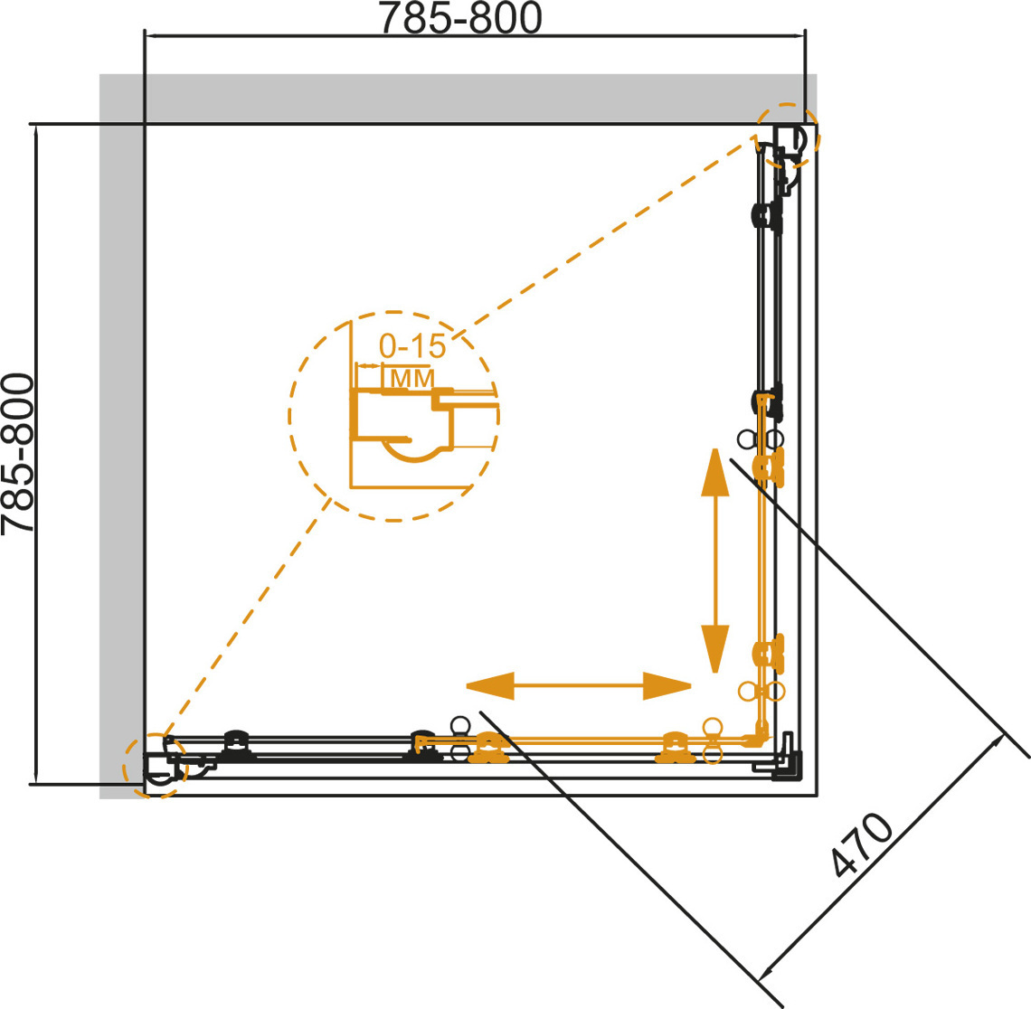 - Габариты с диапазоном регулировок: (785-800)x(785-800)x1950 мм