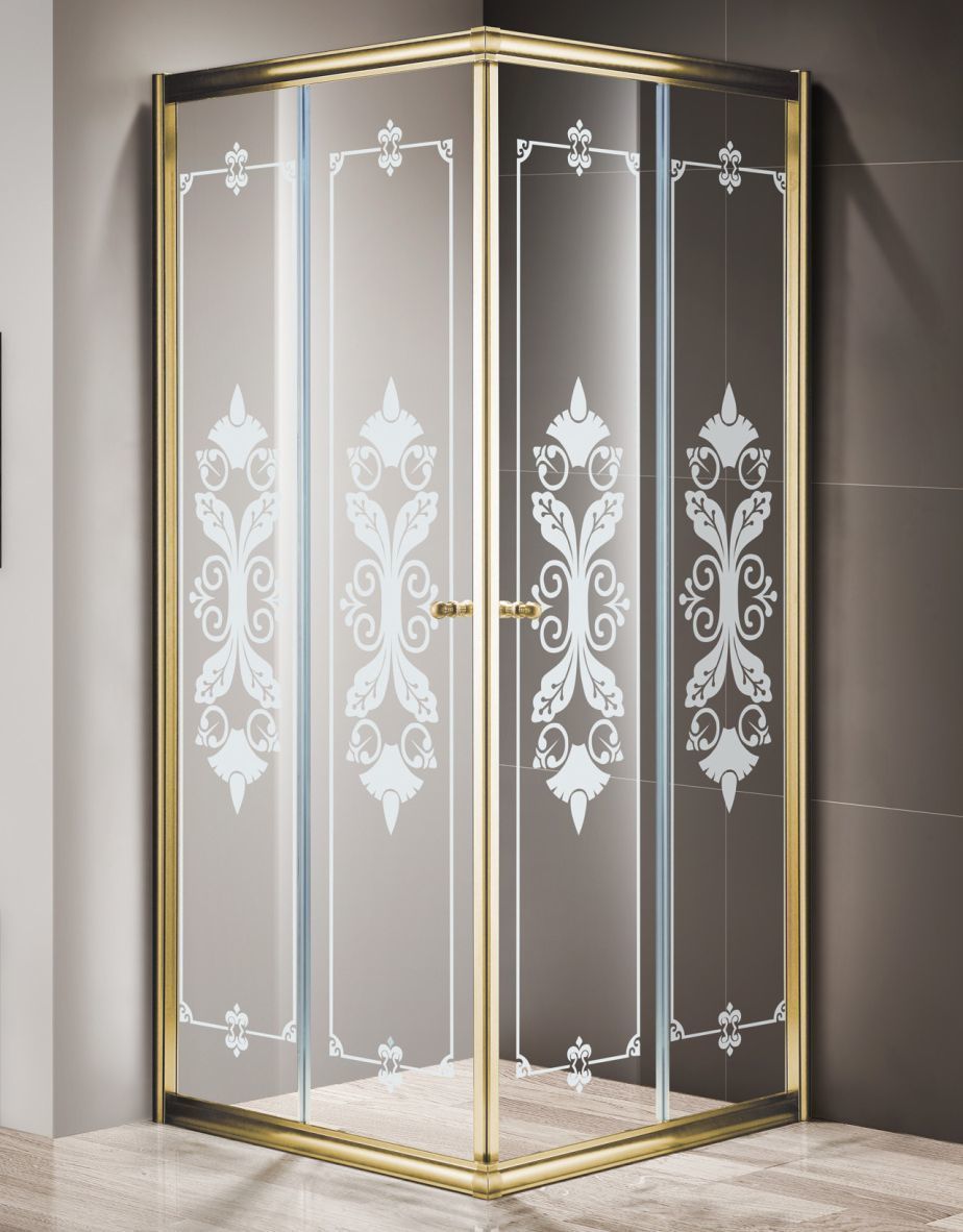 Душевое ограждение Cezares 90х90 см GIUBILEO-A-2-90-SCORREVOLE-CP-G, золото/прозрачное/узор