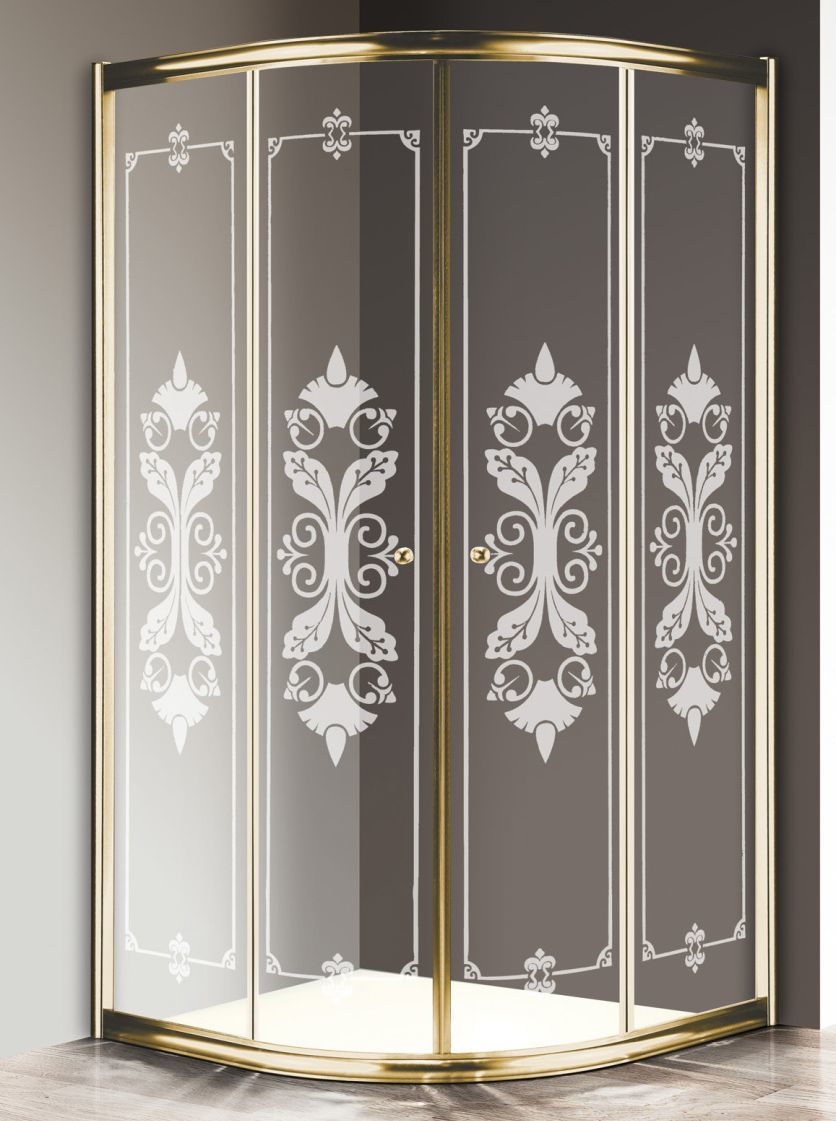 Душевое ограждение Cezares 90х90 см GIUBILEO-R-2-90-SCORREVOLE-CP-G, золото/прозрачное/узор