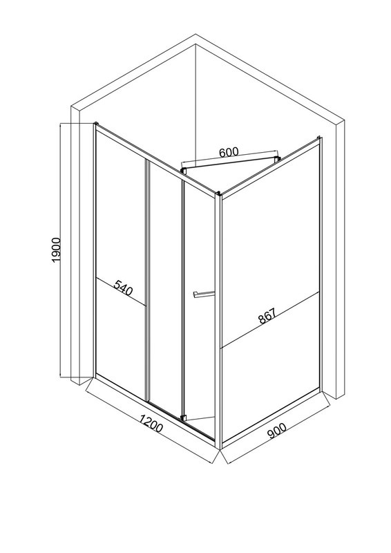 Душевое ограждение EvaGold EG220085 1200х900х1900 мм, стекло - прозрачное, 6 мм, профиль - оружейная сталь. Поддон приобретается отдельно.