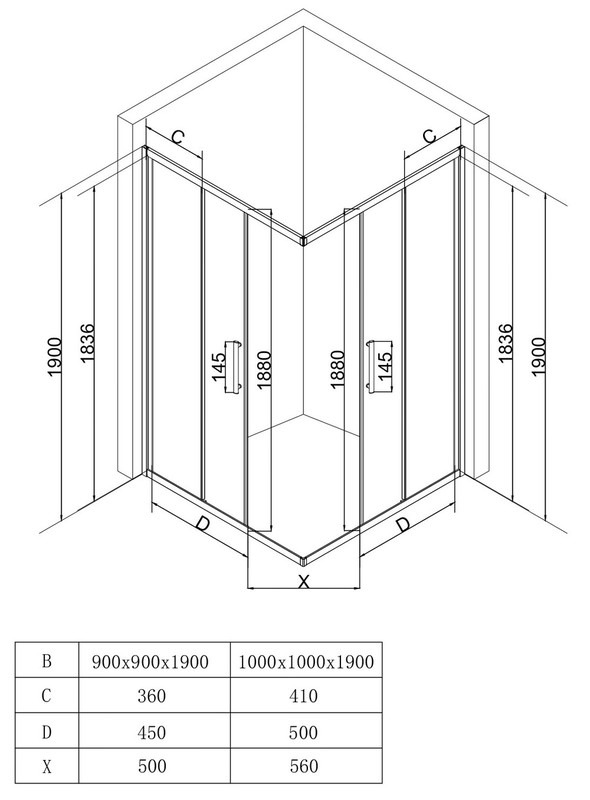 Душевое ограждение EvaGold EG220069 900х900х1900 мм, стекло - тонированное, 5 мм, профиль - чёрный матовый. Ширина входа 500 мм. Поддон приобретается отдельно.