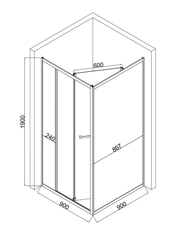 Душевое ограждение EvaGold EG220078 900х900х1900 мм, стекло - прозрачное, 6 мм, профиль - хром. Поддон приобретается отдельно.
