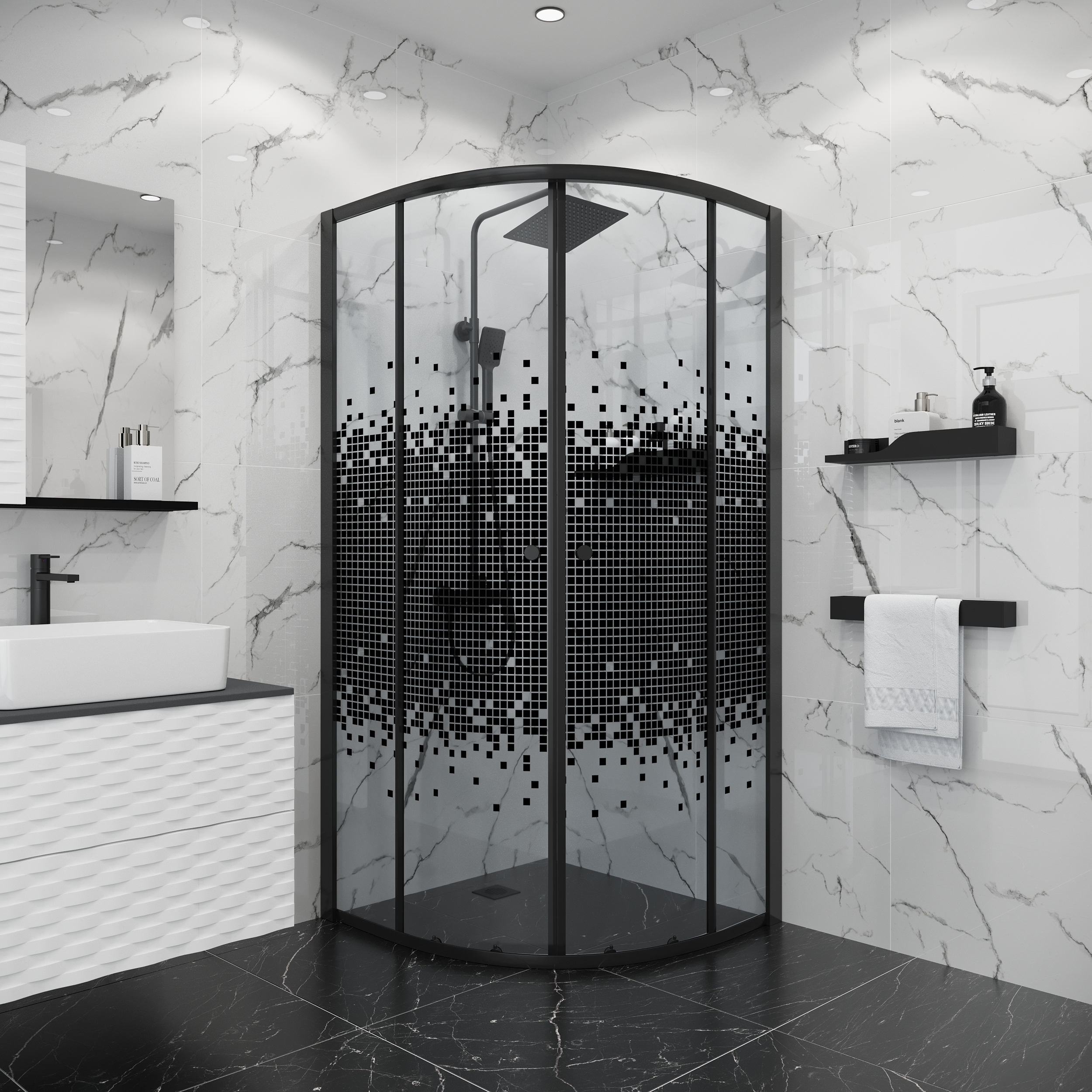 Душевое ограждение Niagara Eco 90x90 см NG-1007-14BLACK, чёрный матовый/мозаика
