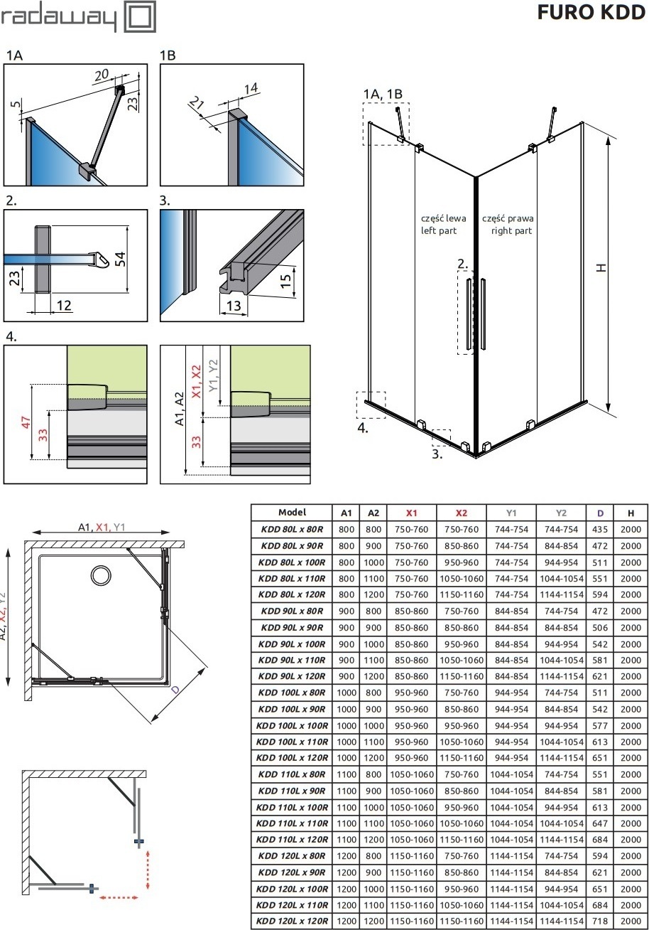 Характеристики Душевое ограждение Radaway (10105120-54-01L+10105090-54-01R)