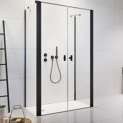 Душевое ограждение Radaway Nes 8 Black DWD+2S 1100х700х2000 мм. Профиль - черный, стекло - прозрачное, 8 мм. Ширина входа: 942 мм. Поддон приобретается отдельно. Дверь 110 см, душевая стенка 70 см.