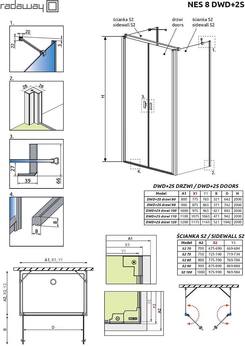 Душевое ограждение Radaway Nes 8 Black DWD+2S 1200х700х2000 мм. Профиль - черный, стекло - прозрачное, 8 мм. Ширина входа: 1042 мм. Поддон приобретается отдельно. Дверь 120 см, душевая стенка 70 см.
