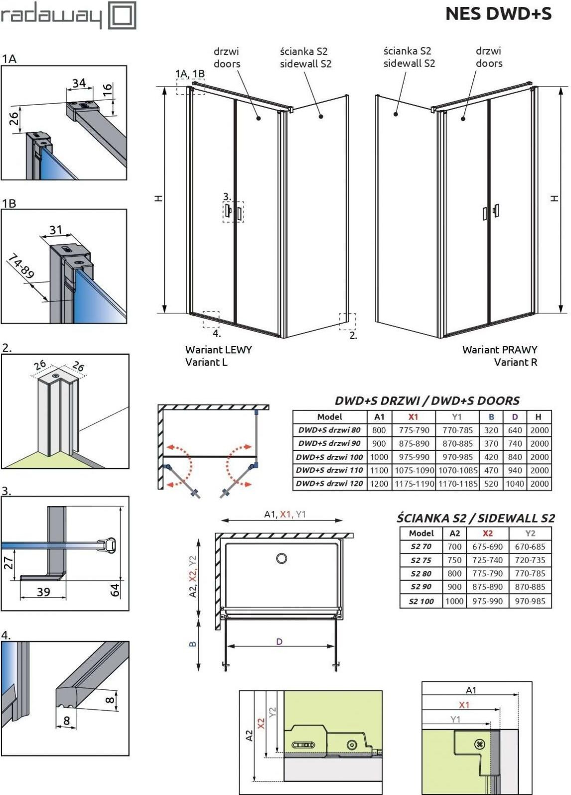 Душевое ограждение Radaway Nes Black DWD+S 1200х700х2000 мм. Профиль - черный, стекло - прозрачное, 6 мм. Размеры с диапазоном регулировок: (1175-1190)x(675-690) мм. Ширина входа: 1040 мм. Поддон приобретается отдельно. Дверь 120 см, душевая стенка 70 см.
