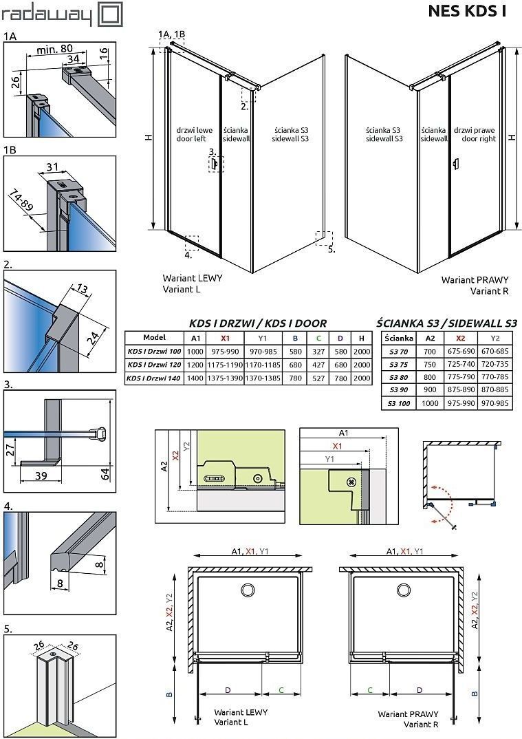 Душевое ограждение Radaway Nes Black KDS I 1400х1000х2000 мм. Профиль - черный, стекло - прозрачное, 6 мм. Размеры с диапазоном регулировок: (1375-1390)x(975-990) мм. Ширина входа: 780 мм. Поддон приобретается отдельно. Дверь 140 см, душевая стенка 100 см.