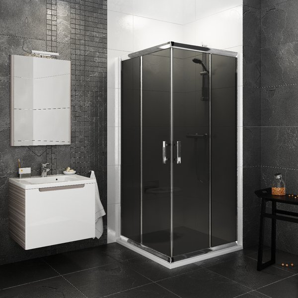 Душевое ограждение Ravak Blix BLRV2K-110, размер 110х110х190 см с угловым входом. Профиль - блестящий, стекло - Transparent, вход 575 мм.