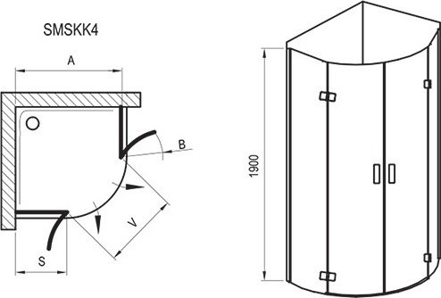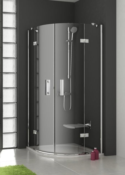 Душевое ограждение Ravak SmartLine SMSKK4-80, размер 80х80х190 см полукруглое, 4-х элементное, в комплекте 2 коротких держателя. Профиль - хром, петли - хром, стекло - Transparent, вход 761 мм.