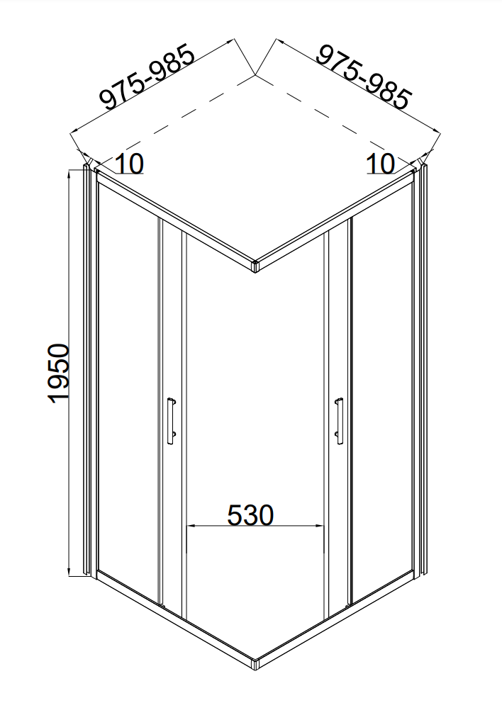 Душевое ограждение Taliente TA-10102-1CP, размер 1000х1000х1950 мм, профиль хром, стекло прозрачное 6 мм, ширина входа 530 мм. Габариты регулировки (975-985)х(975-985)х1950 мм. Поддон приобретается отдельно.