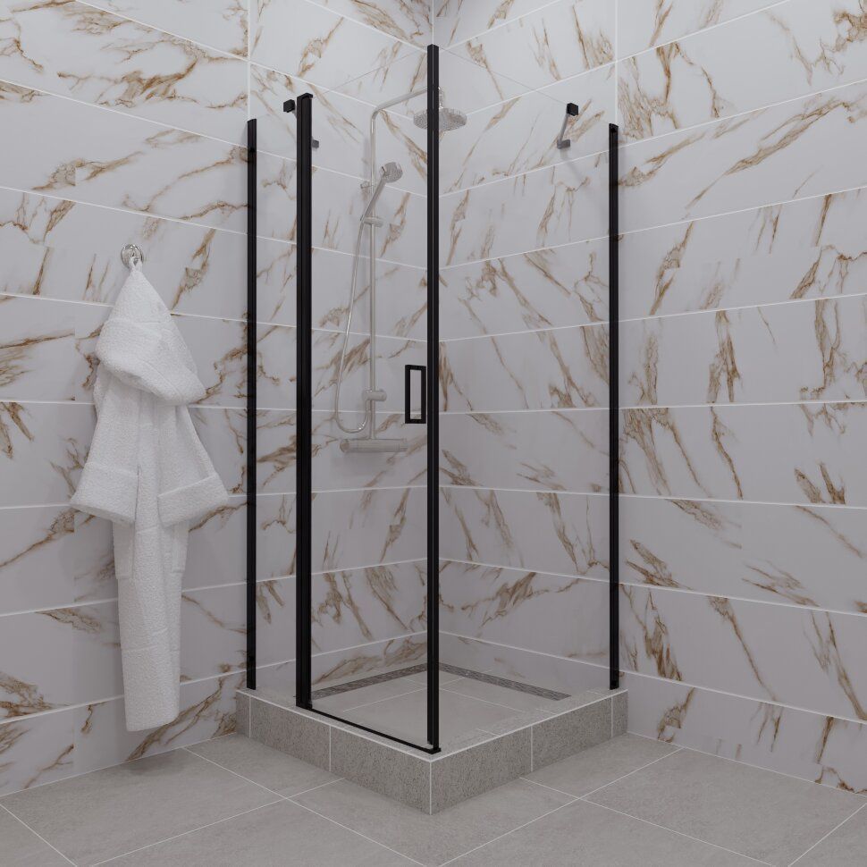 Душевое ограждение Triton Йота с держателями, размер 900x900х1900 мм, профиль чёрный, стекло прозрачное. Поддон приобретается отдельно.