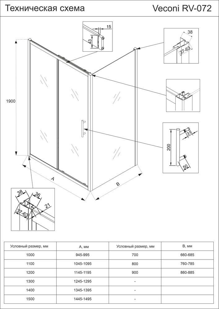 Характеристики Душевое ограждение Veconi (RV072B-120100-01-C4)