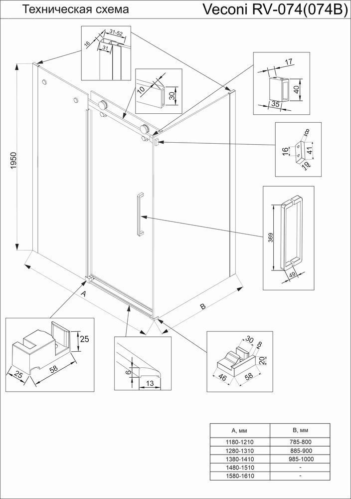 Описание Душевое ограждение Veconi RV074B-140100-01-C4