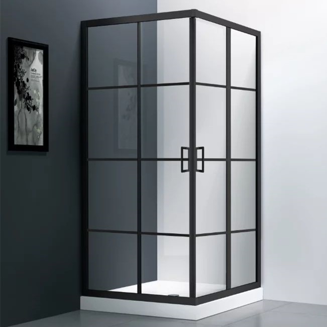 Душевое ограждение Veconi Rovigo RV-09, размер 90х90х195 см, профиль чёрный, стекло прозрачное, вход 420 мм. Габариты регулировки (780-800)х(780х800)х1950 мм.