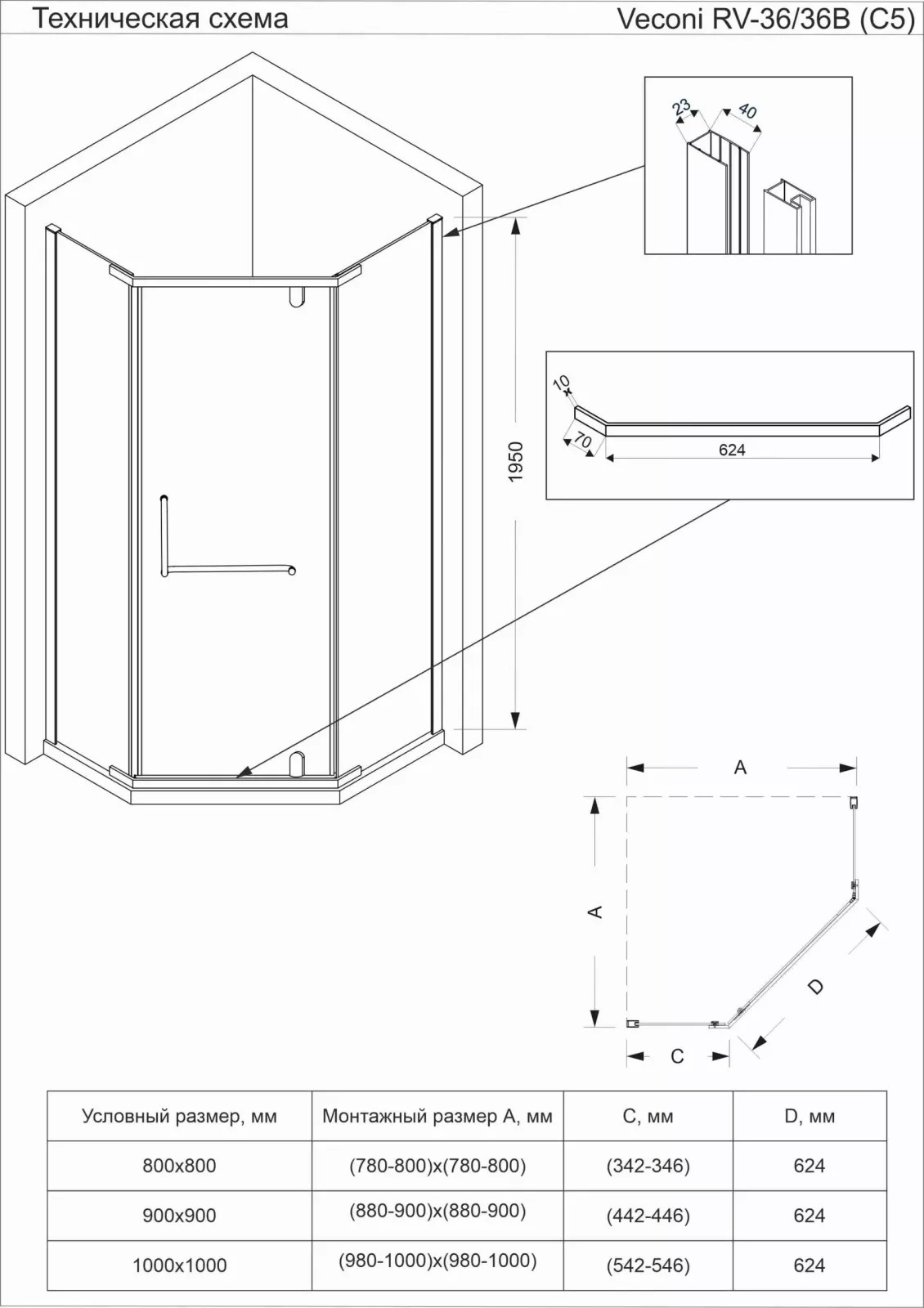 Описание Душевое ограждение Veconi RV36G-90-01-C5